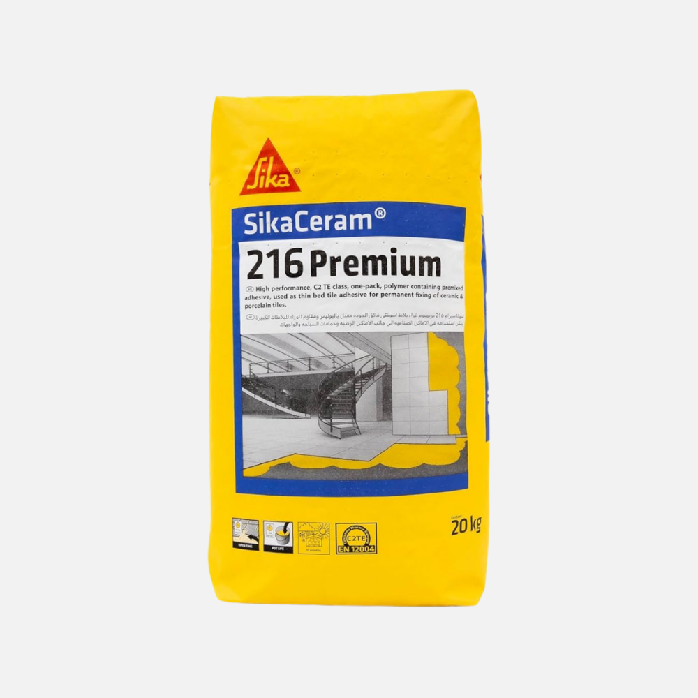 غراء سيكا 216 هو لاصق إسمنتي معدل بالبوليمر (Modified Cement-based Adhesive) مصنف ضمن الفئة C2TE حسب المواصفة الأوروبية EN 12004. هذا التصنيف يعني: